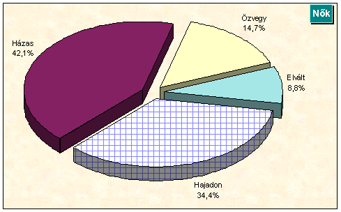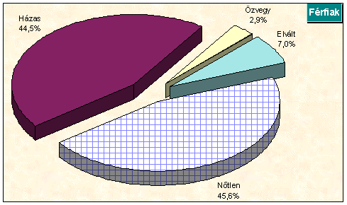 13. A polgárok megoszlása %-ban családi állapot szerint, 2002. január 1-jén